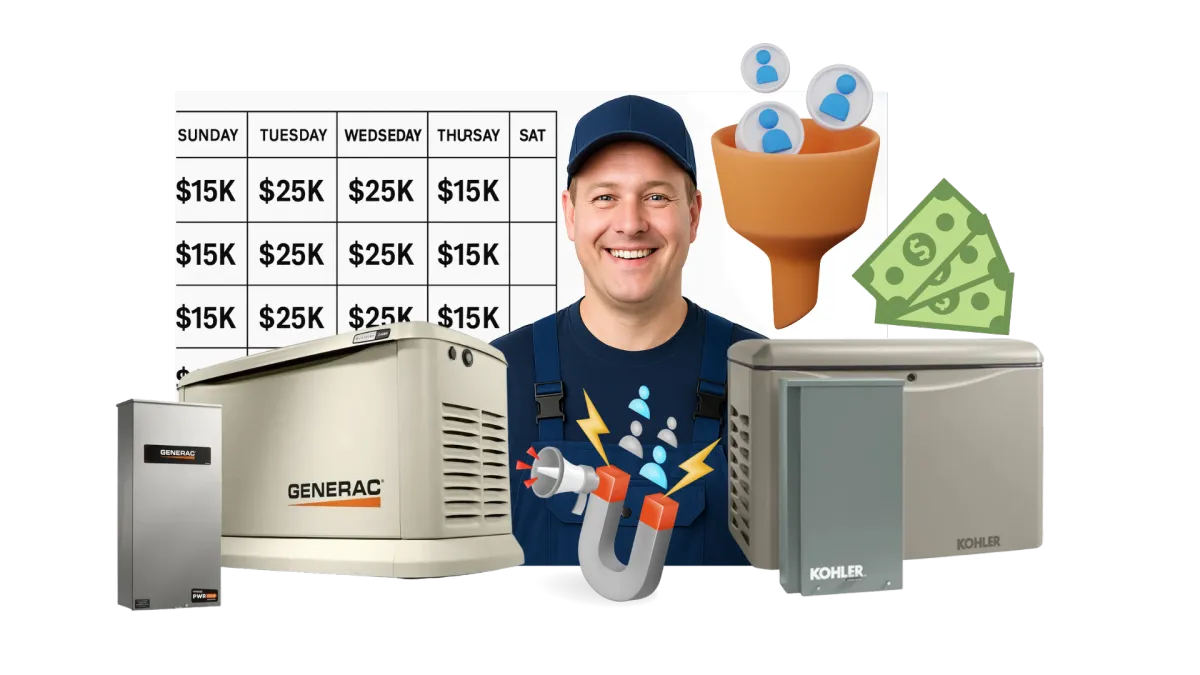 We’ll build you a "homeowner acquisition funnel" that pulls in local homeowners actively looking for backup generators, to get install this month or next. All leads are exclusive to you. No sharing. No BS.
